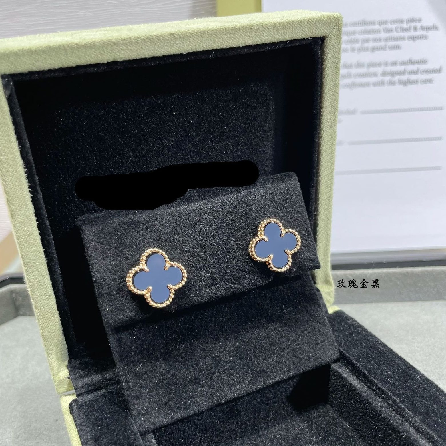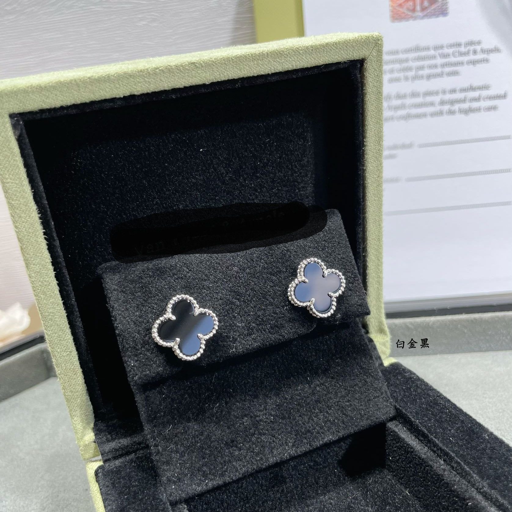 Vintage Alhambra Black Stone Earrings