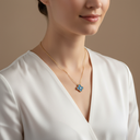 At the center of the blue agate‑patterned clover pendant sits a brilliant cubic zirconia (CZ) stone, adding a subtle sparkle while aligning with recognized gemstone labeling standards. The 42 cm chain rests just below the collarbone—ideal for layering or wearing on its own.
