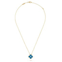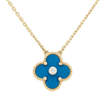 The Vintage Alhambra Blue Agate Clover Necklace blends classic elegance with modern craftsmanship. Handcrafted from 925 sterling silver and finished with 18K yellow gold vermeil, it offers a radiant appearance suitable for both everyday and elevated wear.