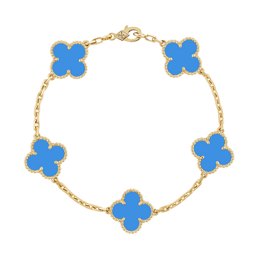The Vintage Alhambra Five Motifs Agate Clover Bracelet embodies timeless elegance and refined artistry. Adorned with five interlocking agate clover motifs, this bracelet symbolizes luck, harmony, and enduring grace—perfect for both daily wear and special occasions.