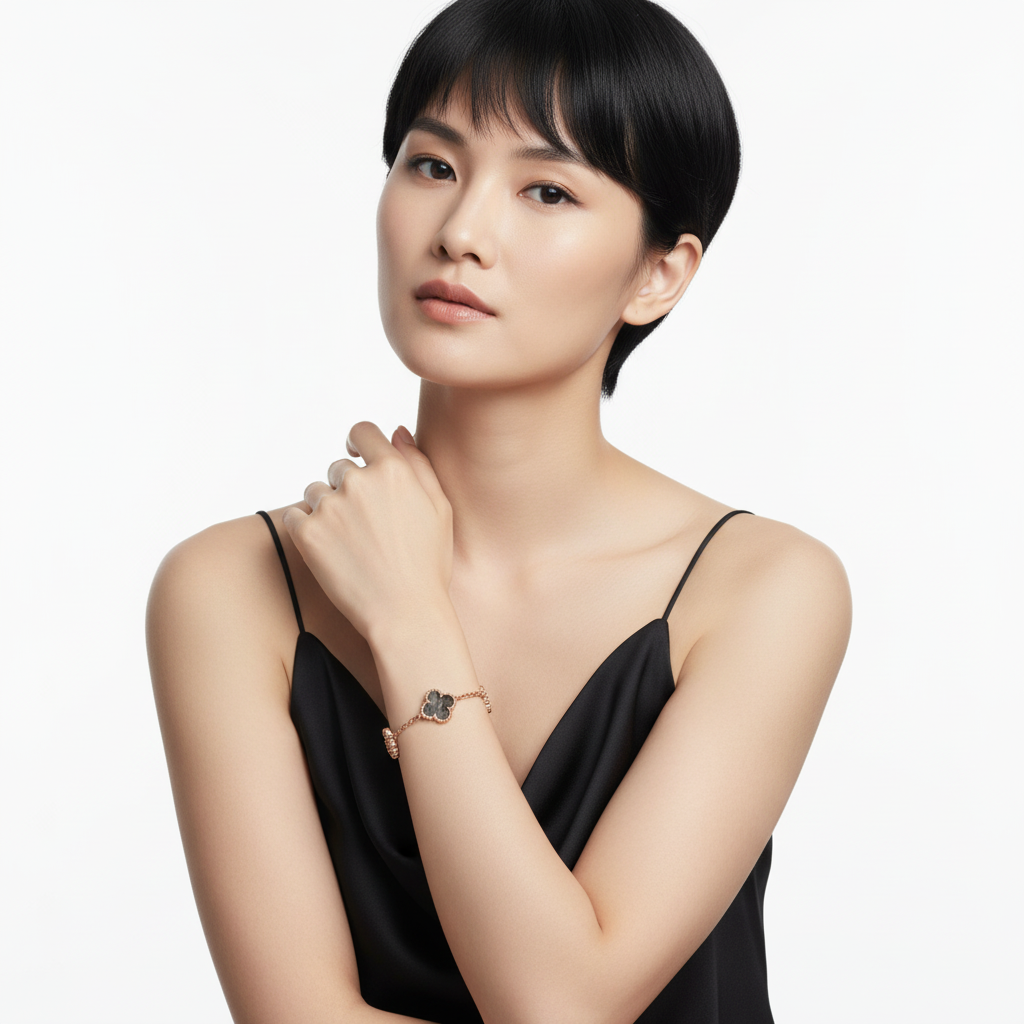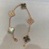 The Vintage Alhambra Five Motifs Bracelet showcases timeless elegance through its iconic clover-inspired design. Featuring alternating motifs crafted with a smooth, glossy black inlay and shimmering cubic zirconia (CZ), the bracelet symbolizes harmony, balance, and refined charm.