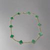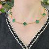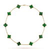 The Vintage Alhambra Malachite 10 Motifs Necklace blends natural charm with timeless elegance. Featuring ten rich green malachite-inspired clover motifs, each outlined with delicate gold-beaded detailing, this piece symbolizes luck, balance, and enduring beauty.