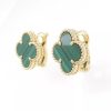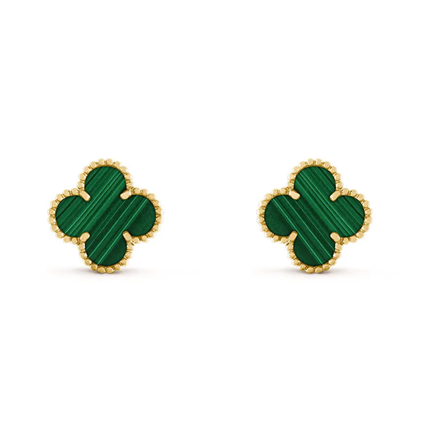 The Vintage Alhambra Malachite Earrings radiate timeless elegance with their signature four-leaf clover design—long associated with luck, harmony, and beauty. Highlighted by rich green malachite inlays and framed in 18K gold vermeil, these earrings capture the perfect balance between natural allure and refined craftsmanship.