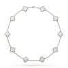 This clover motif necklace showcases ten luminous charms crafted from genuine mother-of-pearl and framed with delicate beaded detailing.