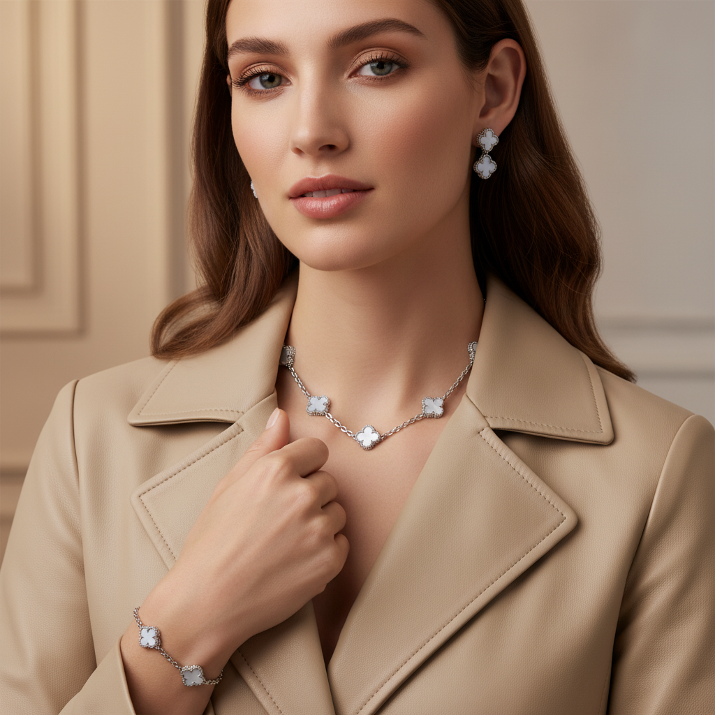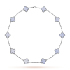 The Vintage Alhambra White Chalcedony 10 Motifs Necklace is a refined expression of timeless craftsmanship and natural elegance. Each of the ten luminous white chalcedony clover motifs is shaped into the iconic Alhambra silhouette — a symbol of luck, harmony, and enduring style.