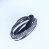 This Vintage Triple Band Ring blends classic elegance with modern detailing. Designed with an intertwined three-band silhouette, it combines glossy black ceramic, brilliant cubic zirconia stones, and a polished 18K white gold vermeil finish for a sleek, eye-catching look.