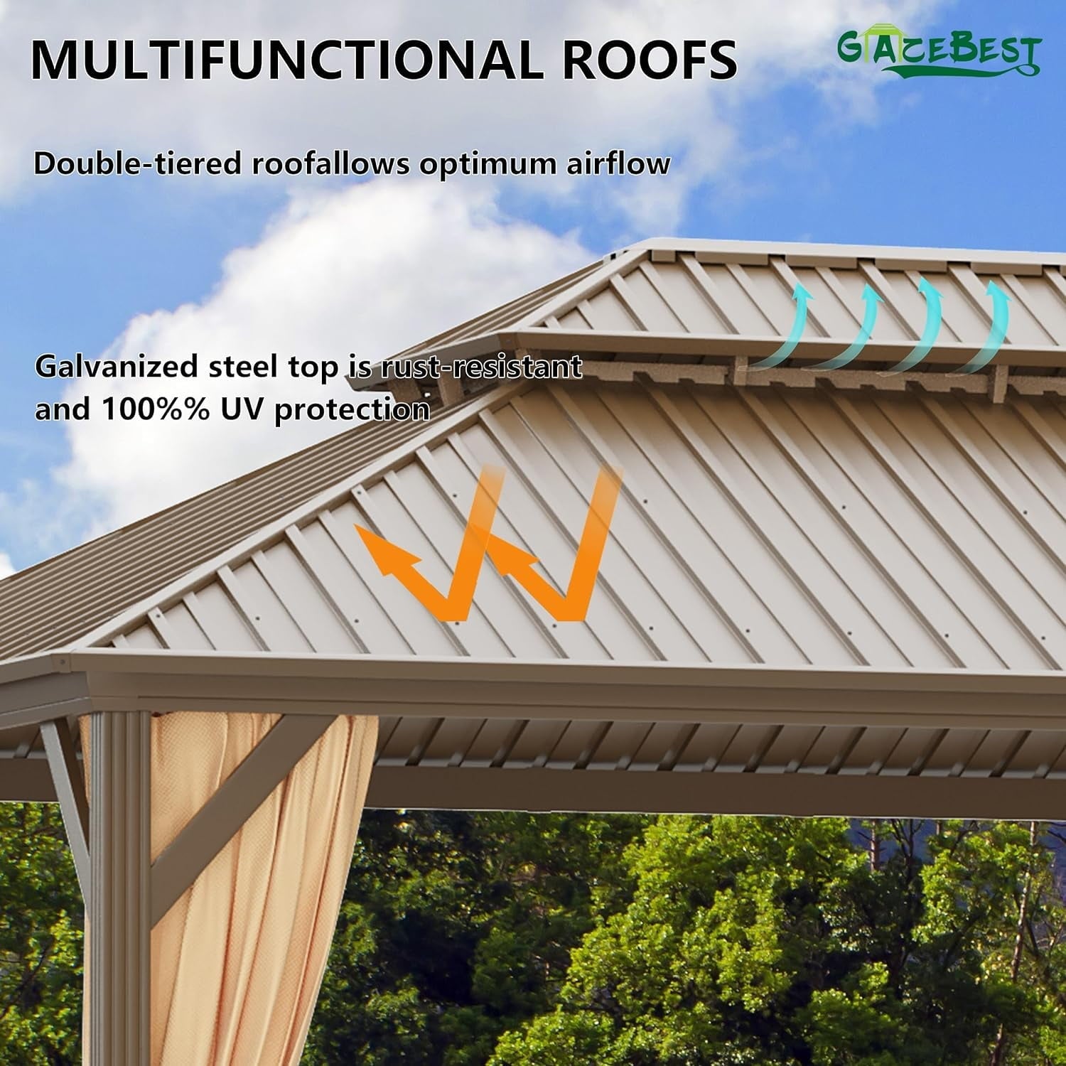 • Weather-Resistant: Steel roof provides protection from sun and light rain.