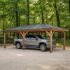 Wooden Carport with Black Steel Roof – Outdoor Vehicle Shelter for Trucks, SUVs & Cars
