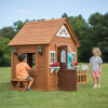 Wooden Kids Playhouse – Cottage Style Outdoor Playhouse with Bench, Door & Windows