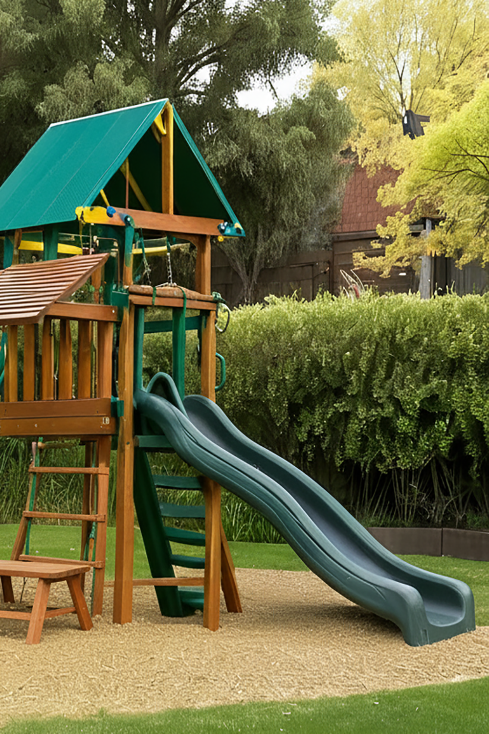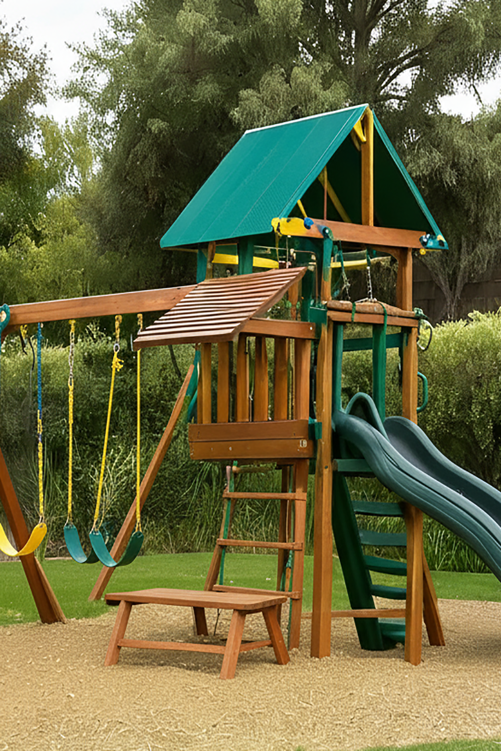 Give your kids the ultimate outdoor playtime experience with this Wooden Kids Playset, featuring dual slides, swings, a climbing ladder, and a built-in picnic bench. Designed for safe, active fun, it encourages climbing, sliding, swinging, and social play all in one compact structure. Perfect for families with toddlers and young children, it transforms your backyard into a vibrant play zone.