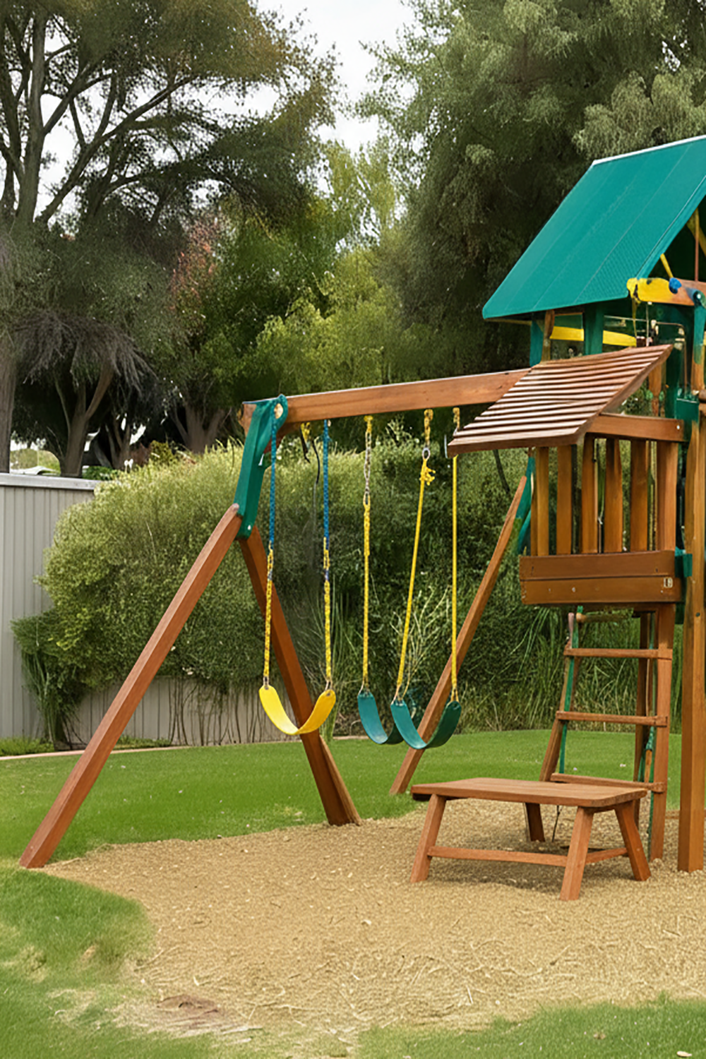 Multi-Swing Options – Includes a toddler-friendly bucket swing and dual belt swings.