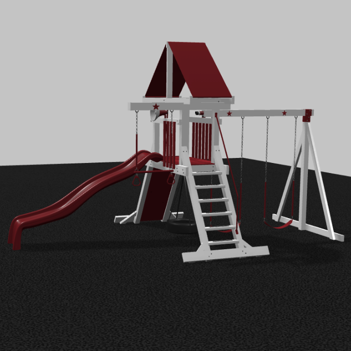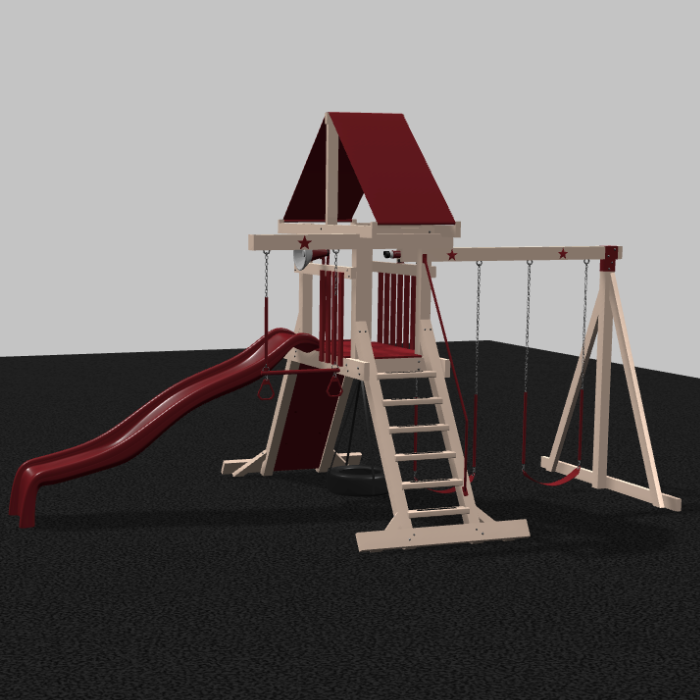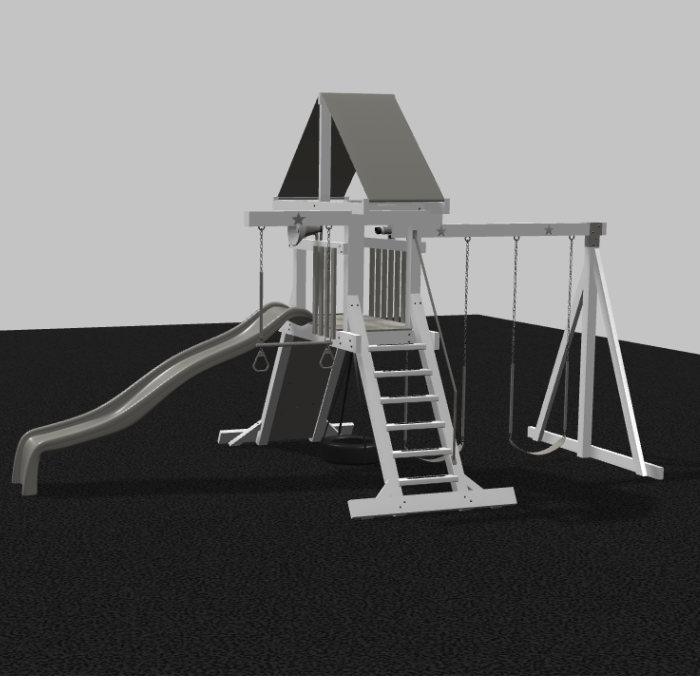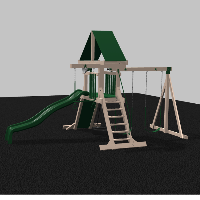 • Swings: 2 belt Swings, Trapeze bar, Tire Swing