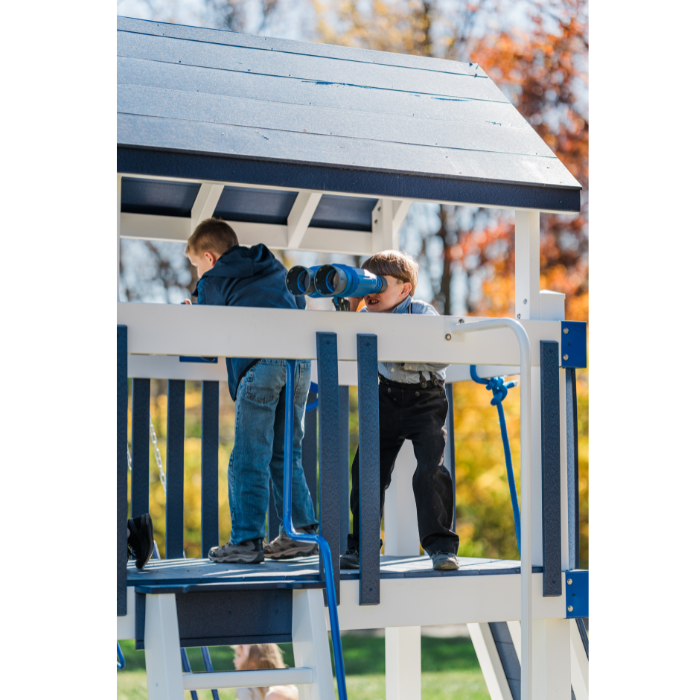 - Clubhouse Design: Elevated play deck with railings for imaginative play and social interaction.