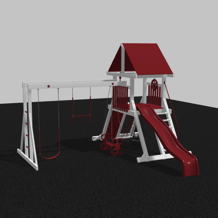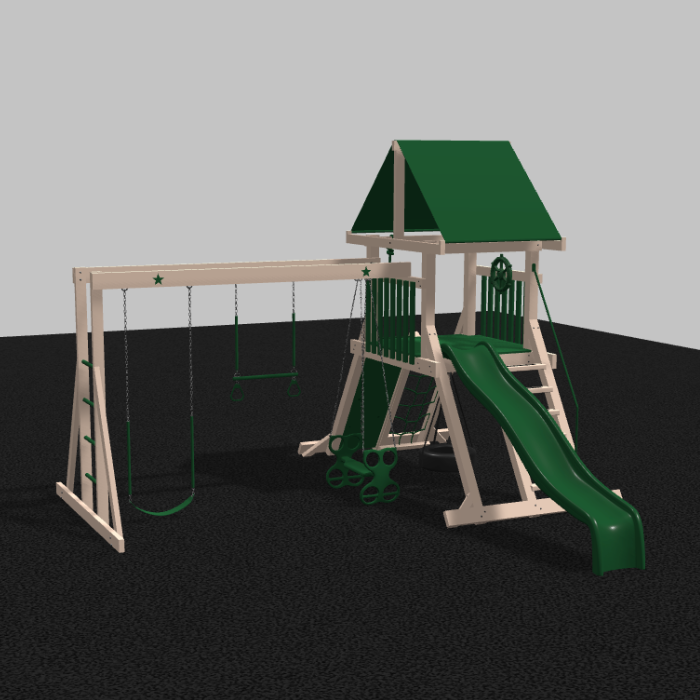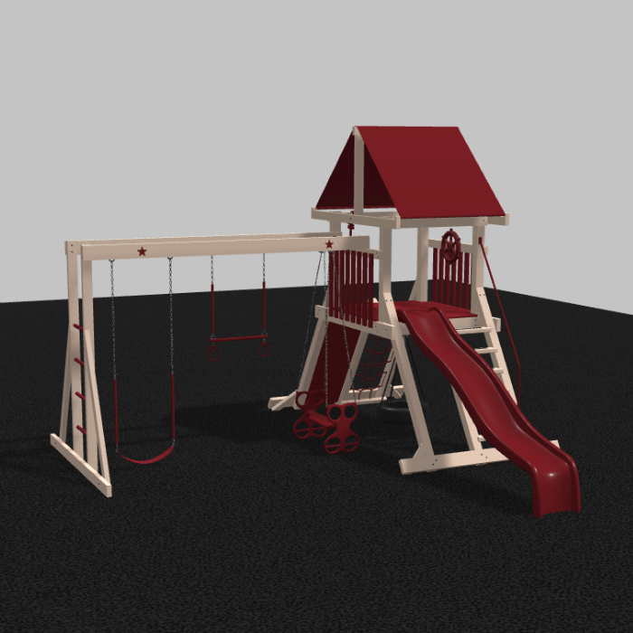 • Swings: Safe-T-Glider, Trapeze, 3 Chain Tire Swing, Belt Swing