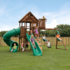 Bring adventure to your backyard with this Wooden Swing Set & Playhouse, designed for maximum fun and creativity. With both a spiral tube slide and a wave slide, kids can enjoy two exciting ways down while building strength and confidence with climbing and swinging activities.